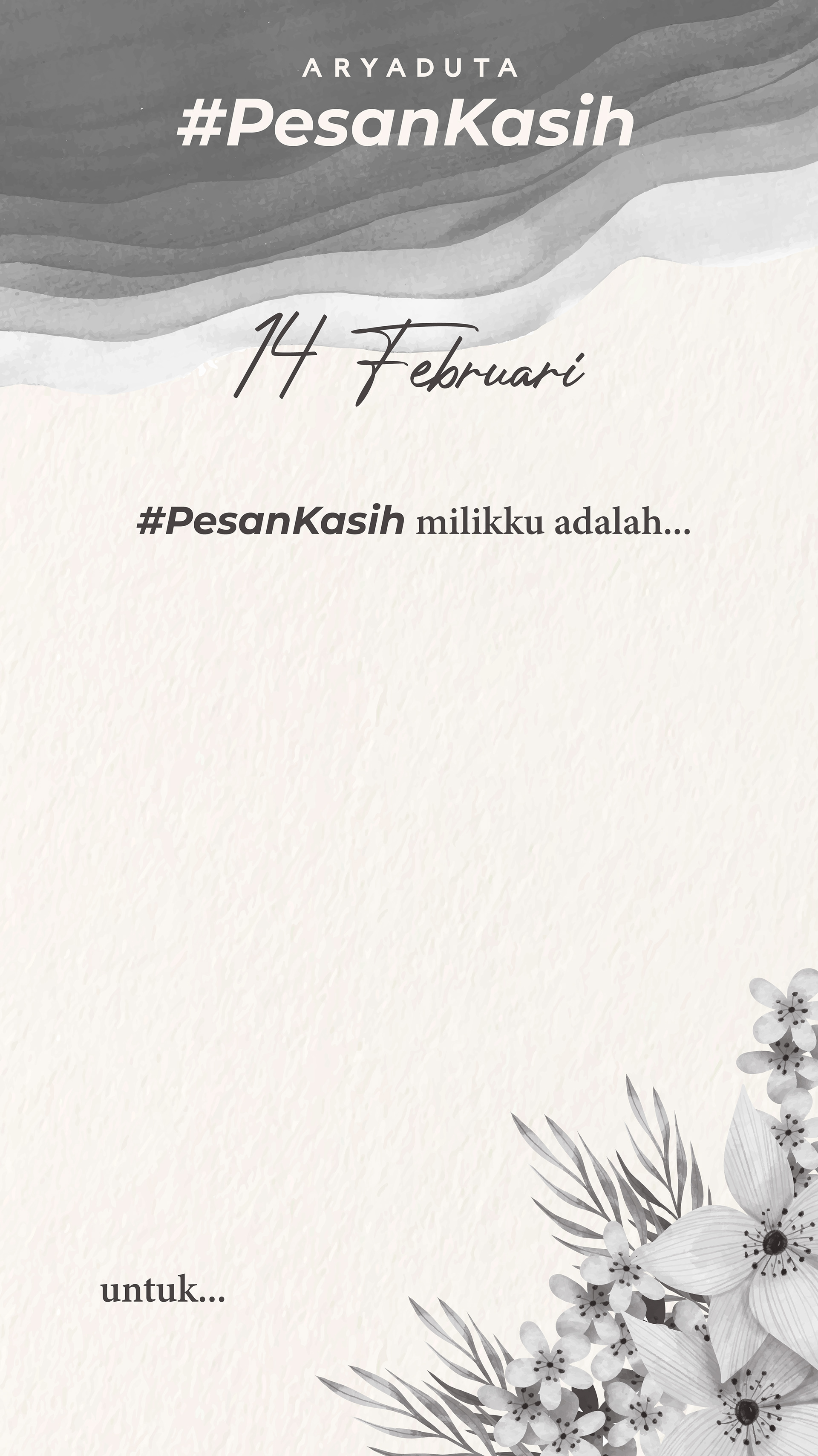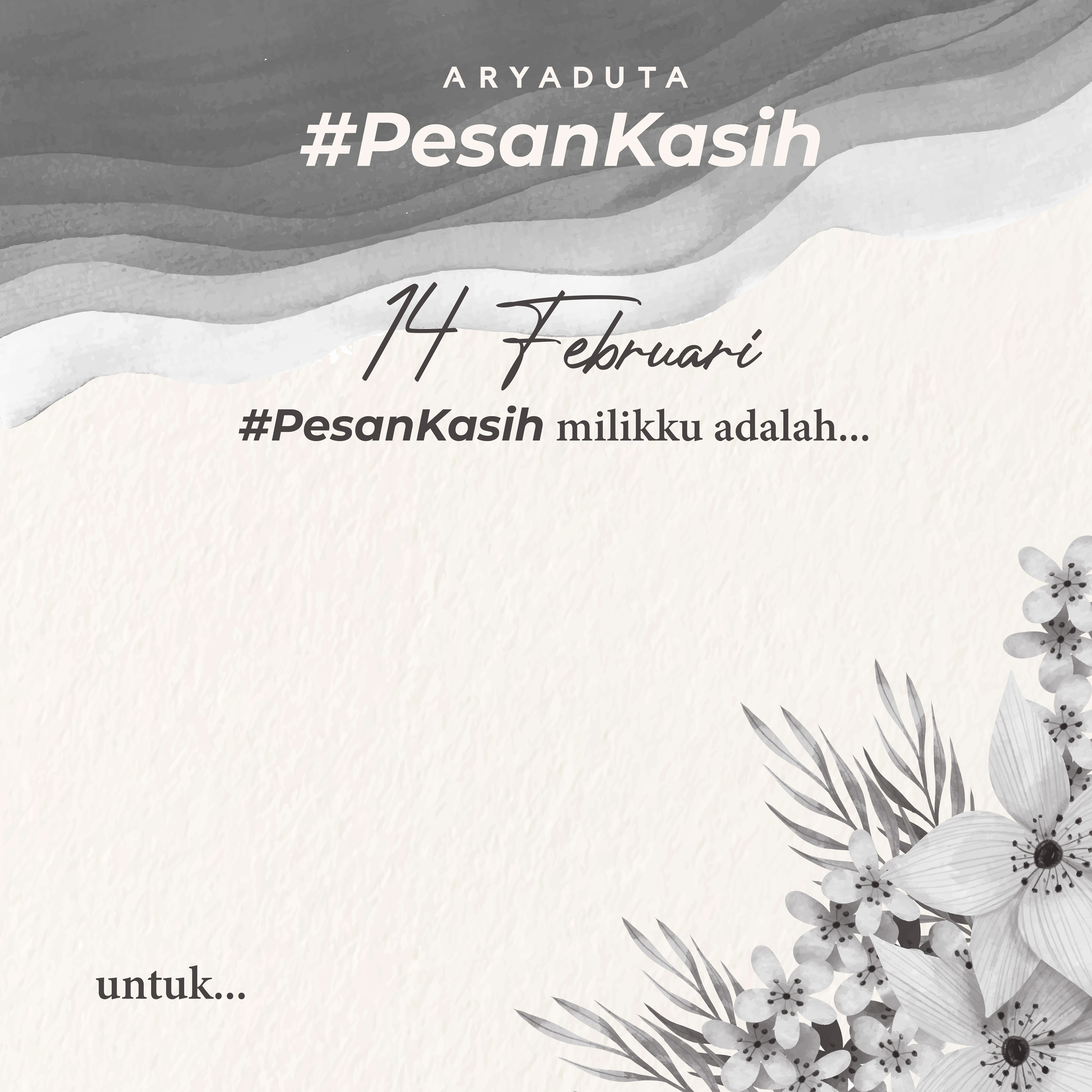 Pesan Kasih or "Message of Love" is a social media campaign by Aryaduta Hotels. We created a simple and monochrome template for Aryaduta Jakarta's Instagram—for people to write short message for their loved ones on Valentine's Day.